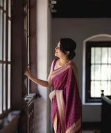 Charming Wine Soft Silk Saree with Contrast Border Highlights