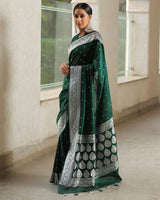 Gorgeous Green Soft Silk Saree with Sparkling Zari Thread Design